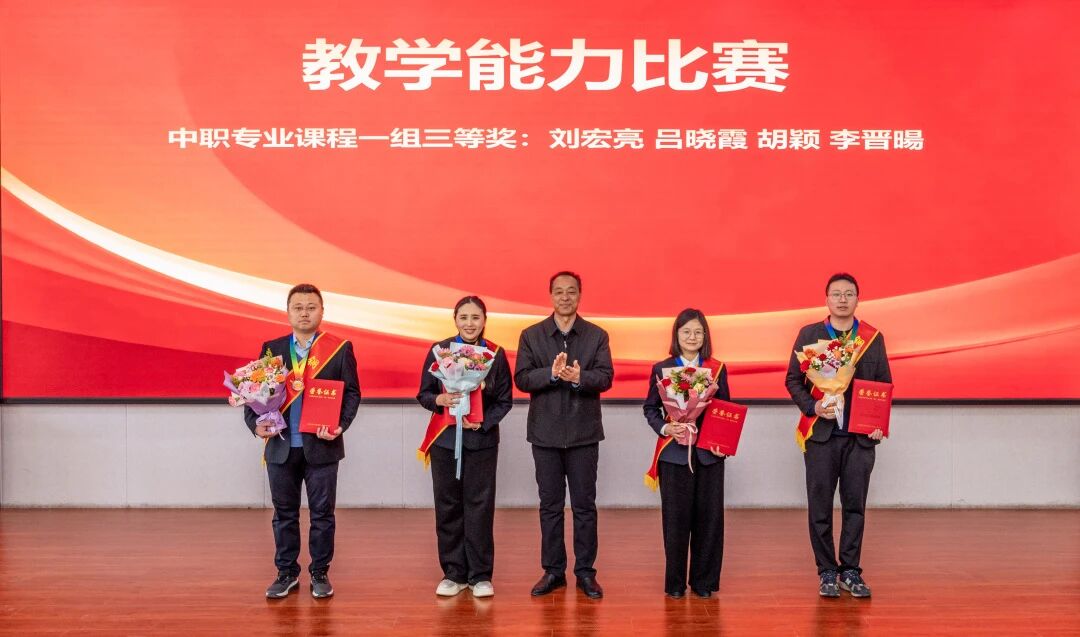 院领导为获奖教师逐一颁奖,掌声与笑意交织,是对每一份“深耕教育”的致敬,更是对“以赛育人”的笃定。