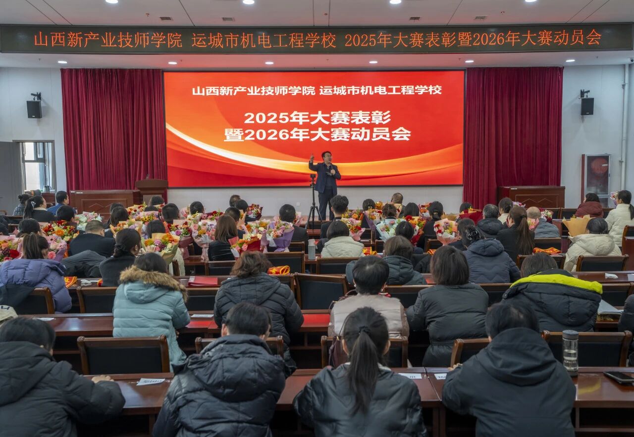 岁末冬深,硕果盈枝。12月29日下午,山西新产业技师学院(运城市机电工程学校)“2025年大赛表彰暨2026年大赛动员会”温情启幕,院领导与全体教师齐聚一堂,共庆2025年赛事荣光,共绘2026年奋进蓝图。