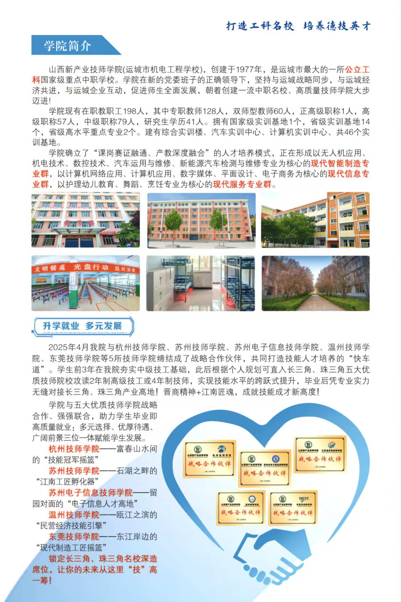 山西新产业技师学院(运城市机电工程学校)2025年招生简章