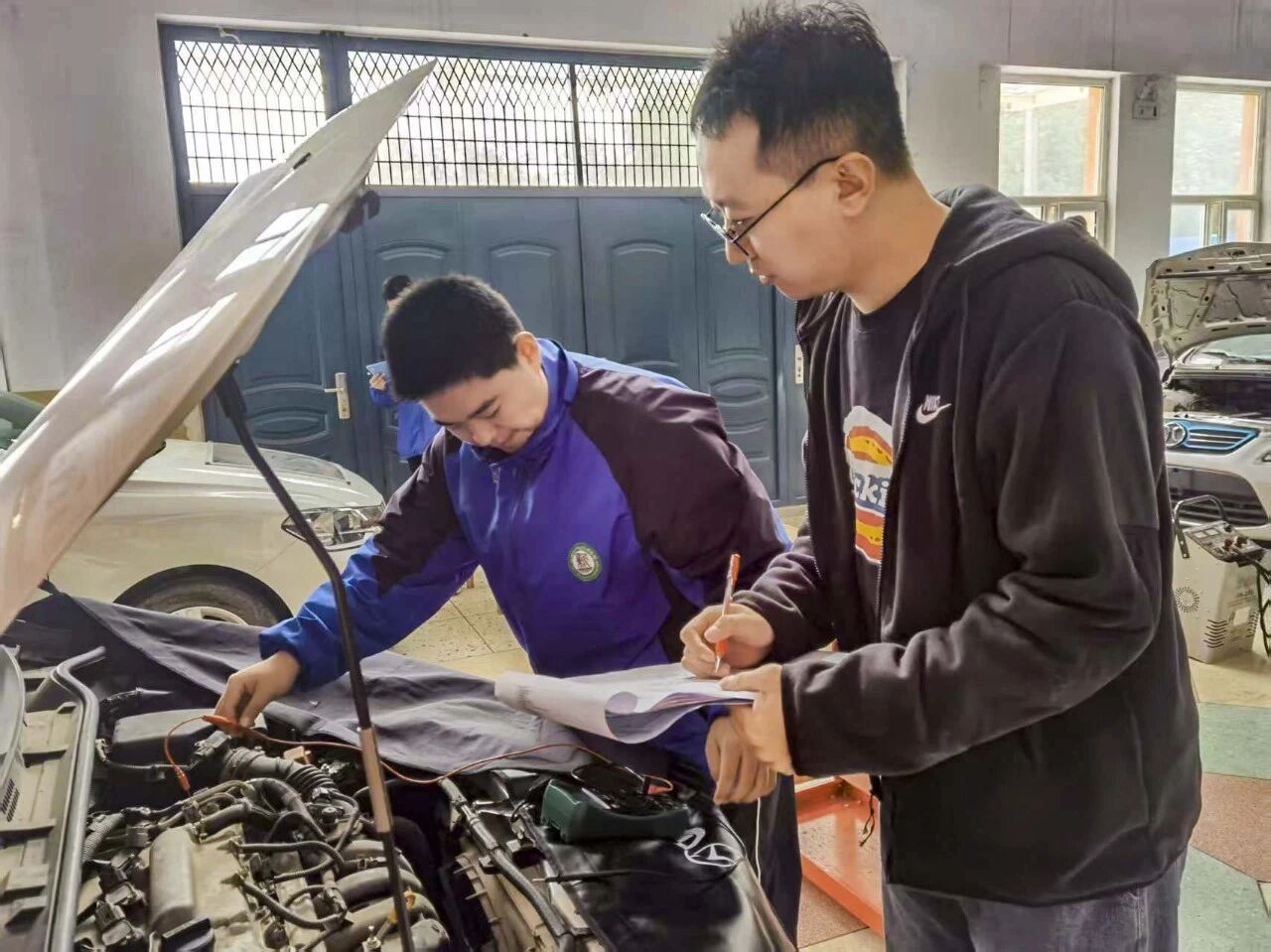 汽车工程系为保障考核质量与培训实效,一方面优化教学内容,有机融入实操演练,确保学生在掌握专业知识的同时,同步提升职业技能;另一方面强化考核与师资队伍建设,搭建标准化实操考场,切实将“岗课赛证”育人理念落到实处,有效提升学生职业技能水平与就业竞争力。