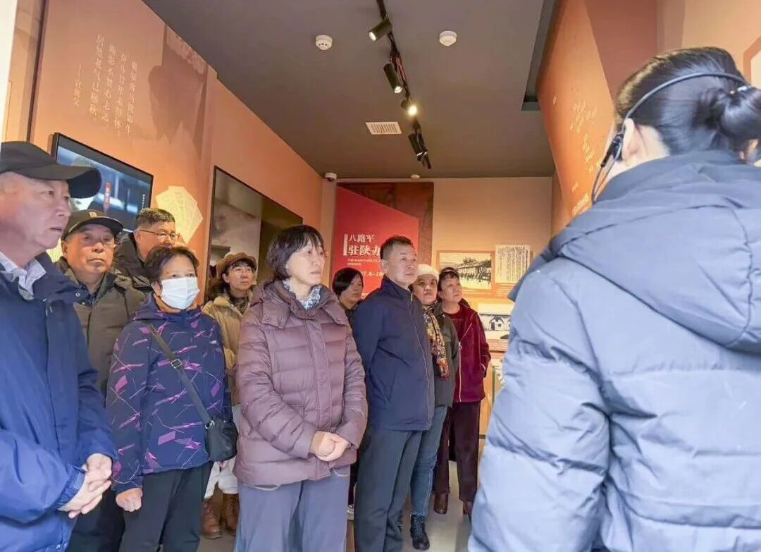 最后,老党员们乘车前往八路军西安办事处纪念馆。在讲解员的带领下,大家依次参观各个展区。珍贵的历史照片、详实的文献资料、复原的生活场景,生动再现了八路军西安办事处当年在艰苦环境中开展抗日民族统一战线工作、输送进步青年、转运抗战物资的峥嵘岁月。老党员们认真聆听讲解,追忆革命先辈为民族独立和人民解放抛头颅、洒热血的英勇事迹,深切感悟革命先辈们坚定的理想信念与崇高的家国情怀。