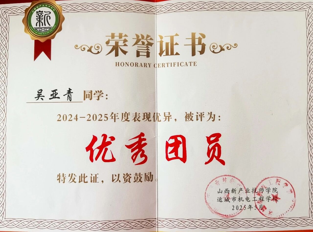 “每一份投入都有重量,每一次向前都有意义”,这是吴亚青坚守的信念。作为共青团员,她凭着坚持与真诚,在学习、技能、实践中不断成长,用行动书写青春担当。未来,愿她继续脚踏实地,奋勇向前,收获更多成长,绽放青春光彩!