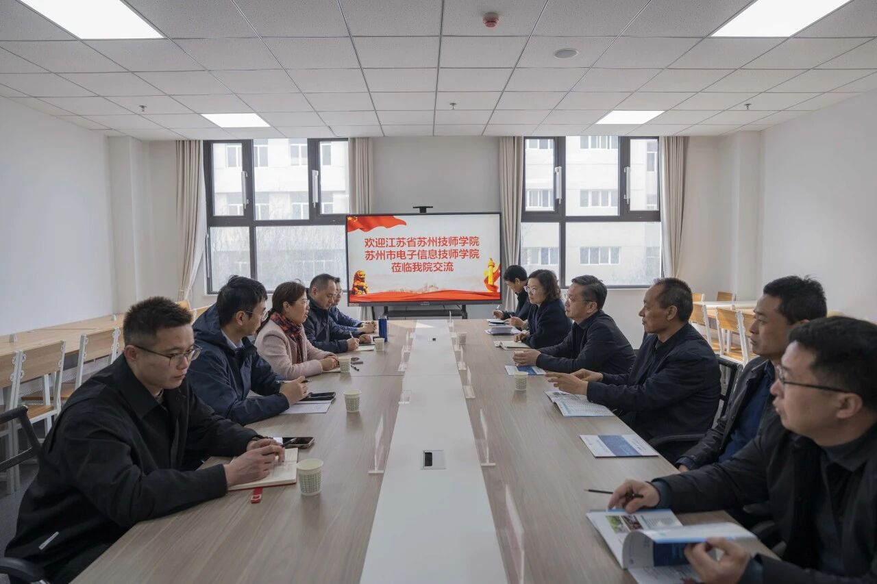 近日,江苏省苏州技师学院、苏州电子信息技师学院一行到我院开展校际交流座谈活动,实地参观了我院公共实训基地,详细了解基地的建设规模、实训设备配置、教育教学开展及人才培养实施等情况。