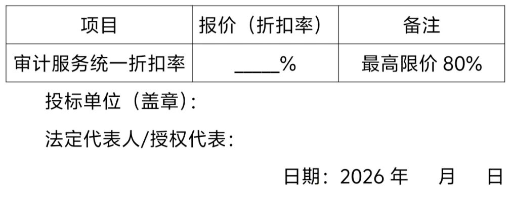 6. 本次遴选确定4家中选机构,审计服务费用按4家中标单位的平均折扣率结算。
