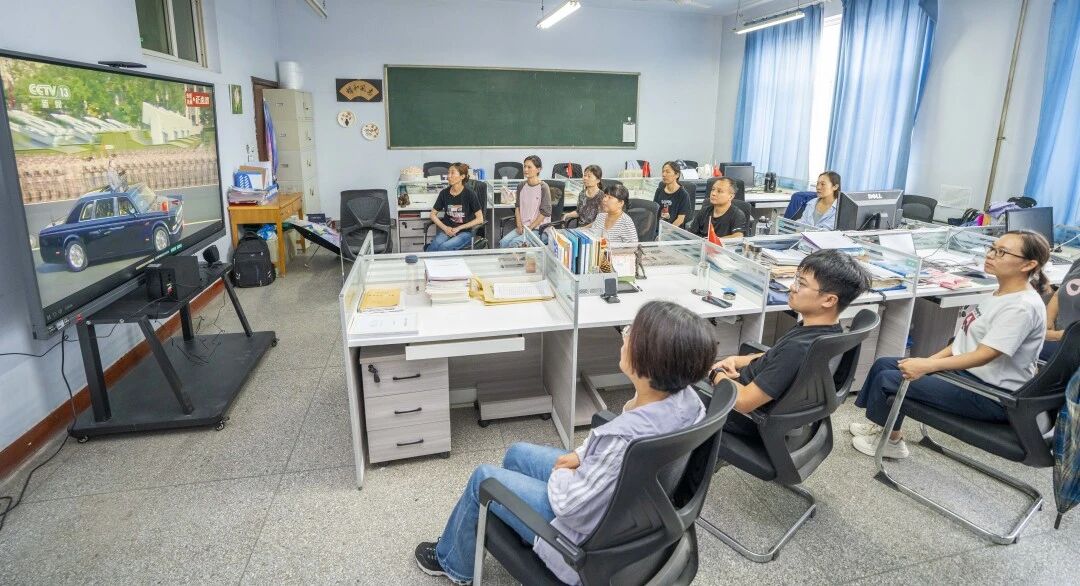 党办孟超群老师表示:"阅兵式让我们既回望历史的厚重,又感受时代的力量。作为思政教师,我们要将抗战精神融入教育教学全过程,创新教学方法,丰富教学载体,让爱国主义成为学生成长成才的精神底色。"