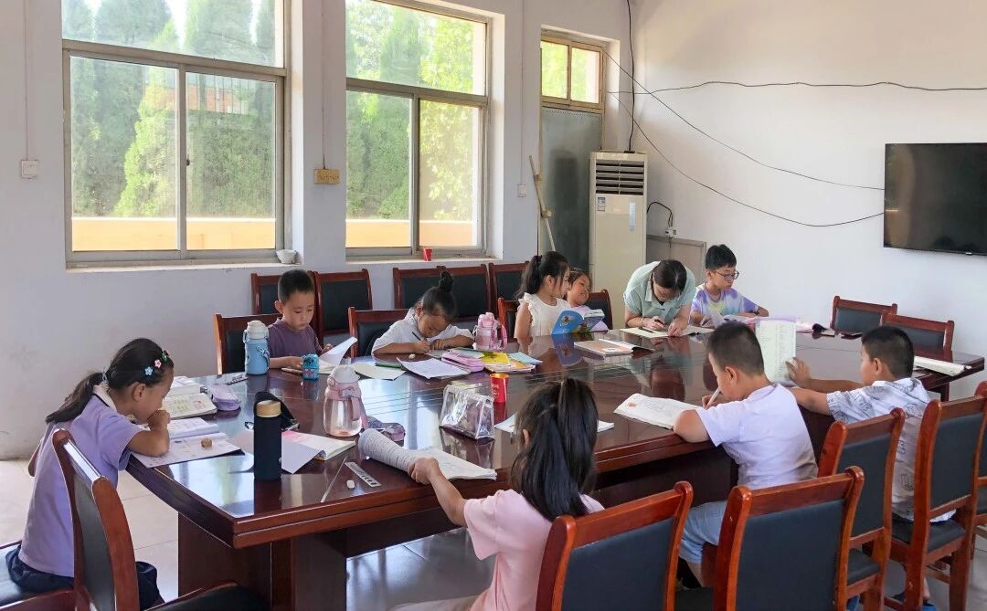 夏日蝉鸣声中,南侯村村委会院内传来琅琅书声。十余名中小学生围坐在铺满阳光的会议桌前奋笔疾书,身旁的工作队队员正俯身为学生解疑。8月以来,南侯村驻村工作队将会议室改造成“暑期小课堂”,为留守儿童提供免费课业辅导和素质拓展服务,累计服务达200余人次,用教育星火点亮了乡村暑假。