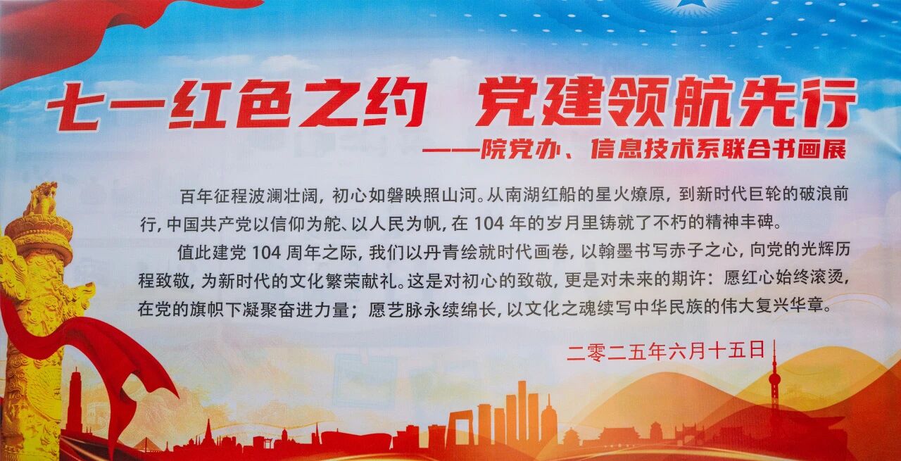 为庆祝中国共产党成立104周年,近日,由院党办联合信息技术系共同主办的“七一”党建主题书画展在校园内成功举办。本次展览旨在以艺术形式弘扬红色精神,展现师生风采,献礼党的生日。