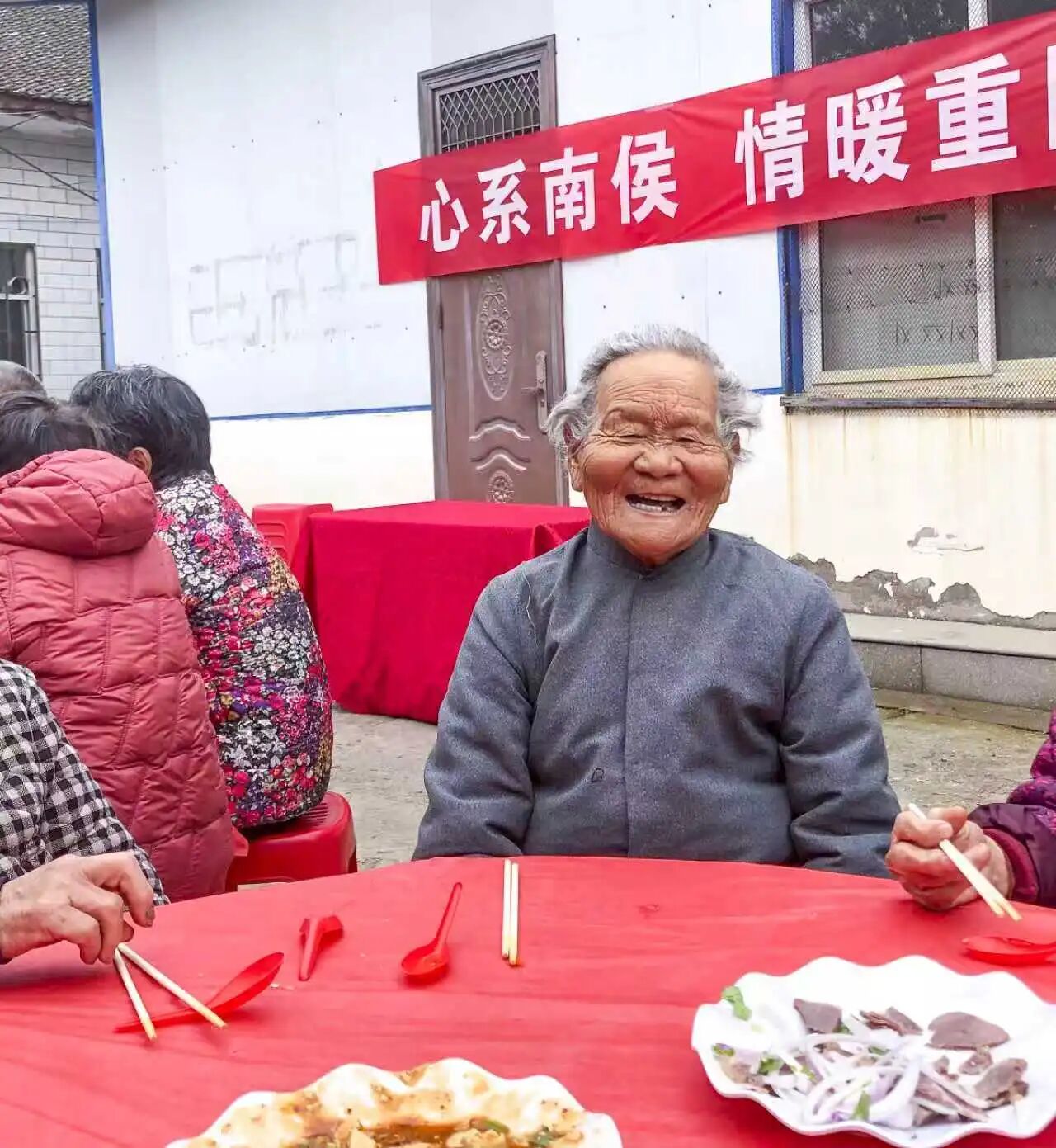 席间,老人们围坐在一起,品尝可口饭菜,聊聊家常近况,脸上洋溢着幸福的笑容,整个大院充满了温暖与感动。