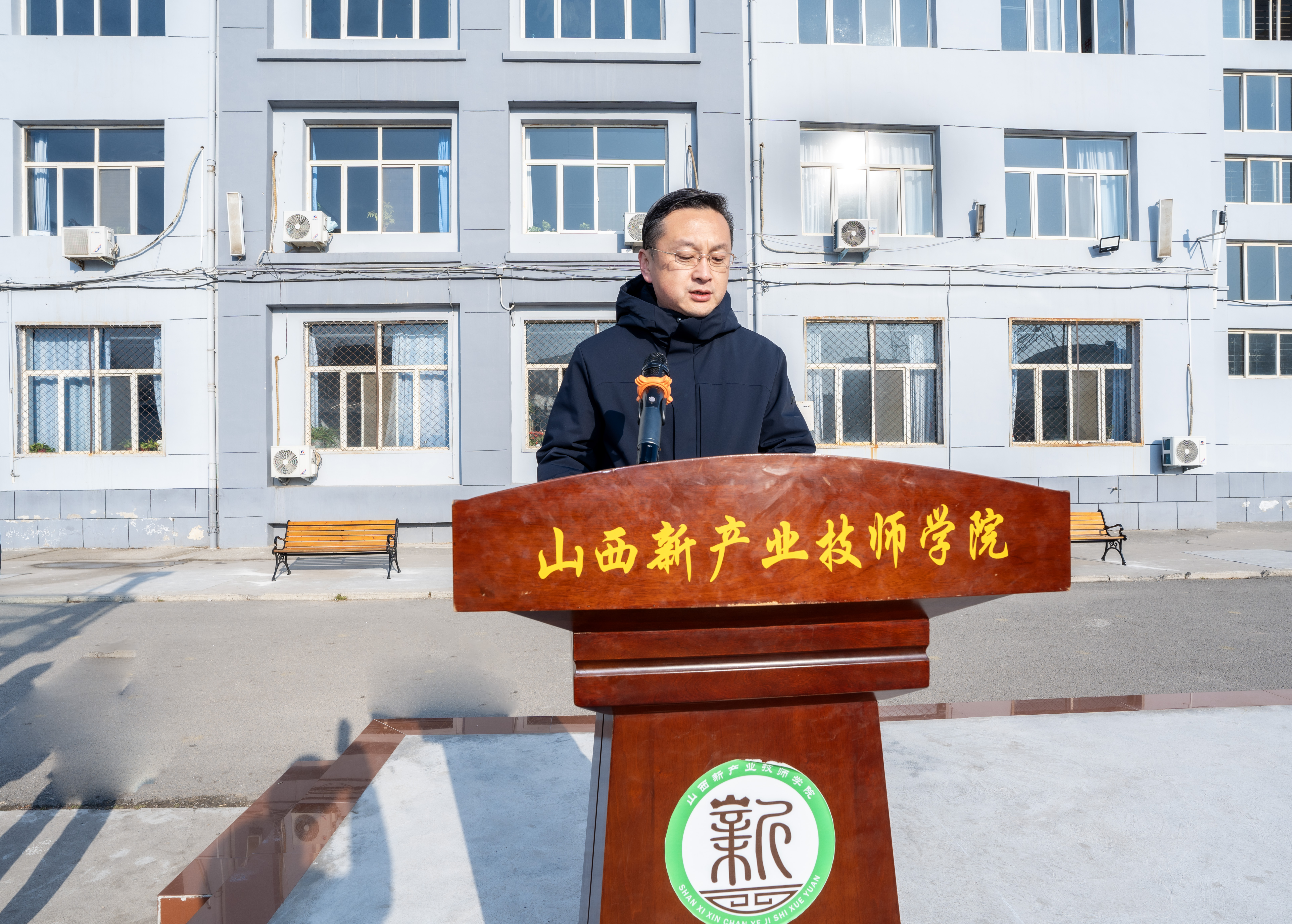 升旗仪式上,院党委副书记、院长潘鹏发表致辞。他向全体师生致以新年的问候与祝福,回顾了学校过去一年的丰硕成果,鼓励大家在新的一年里秉持初心、勇毅前行,以实干书写青春华章,为学校发展与个人成长不懈奋斗。