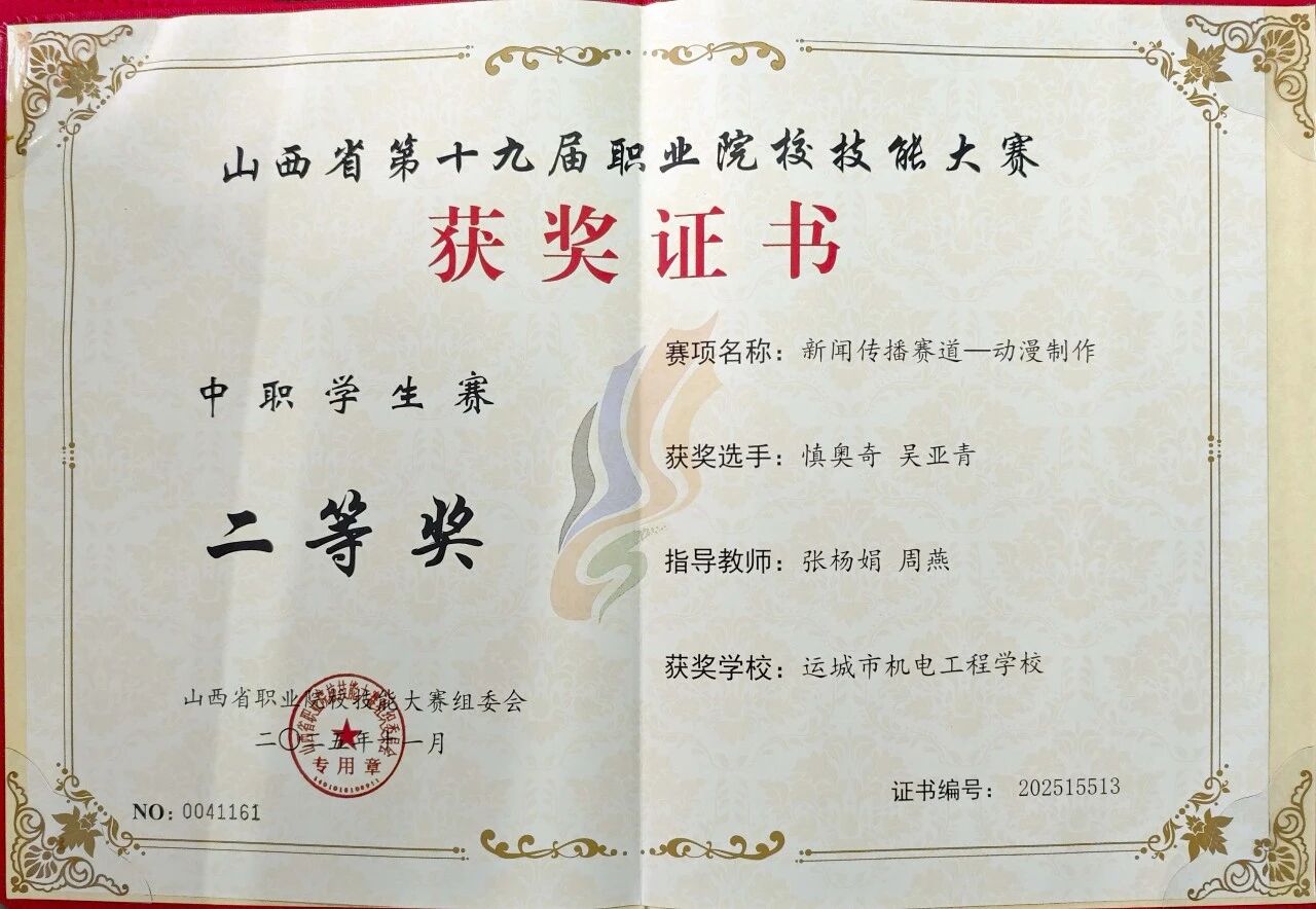 专业技能方面,她始终保持积极进取的心态,主动参与山西省第十八届技能大赛积累经验,今年她全力备战第十九届技能大赛,认真打磨专业能力,并在十九届技能大赛中获得二等奖。生活中,她热心公益,积极参加学校组织的公益活动,在服务他人、奉献集体的过程中,体会青年担当,让成长更有温度;还参与校园井盖画创作,用画笔为校园增添色彩,在实践中感受平凡小事里的价值,让青春充满生机。