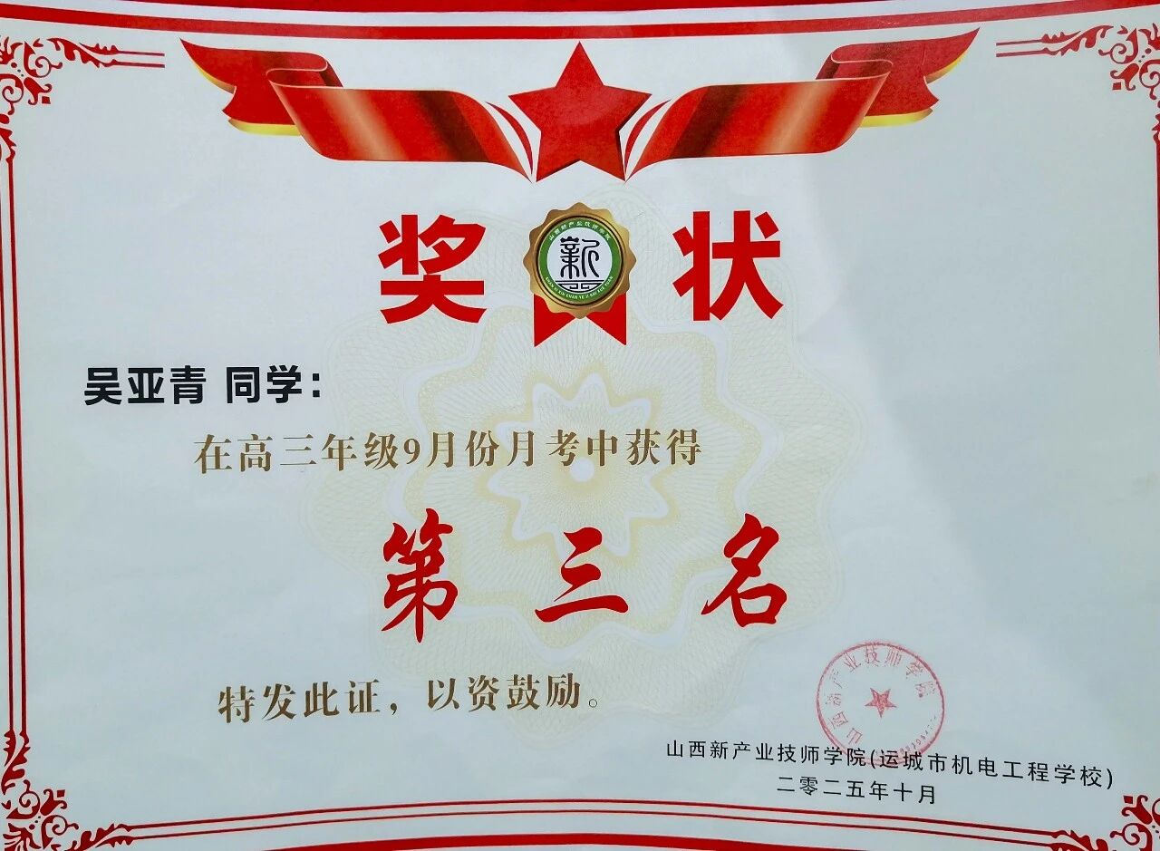 作为一名共青团员,吴亚青一直以团员的标准严格要求自己,自律勤勉,积极进取。学习上,她认真踏实,刻苦努力,在上学期高三第一次月考中取得年级第三名的好成绩,还获评“学习之星”。这份荣誉是对她日常付出的认可,她也清楚自己还有进步空间,始终保持专注,查漏补缺,一步一个脚印扎实提升,在求学路上稳步前行。